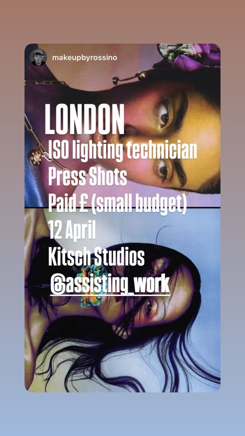lighting technician needed for press shots in london at kitsch studios. paid job with a small budget.