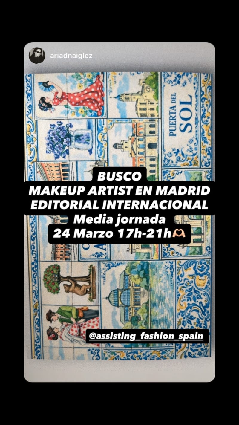 seeking a makeup artist in madrid for an international editorial. half-day call on 24 march from 17h to 21h.