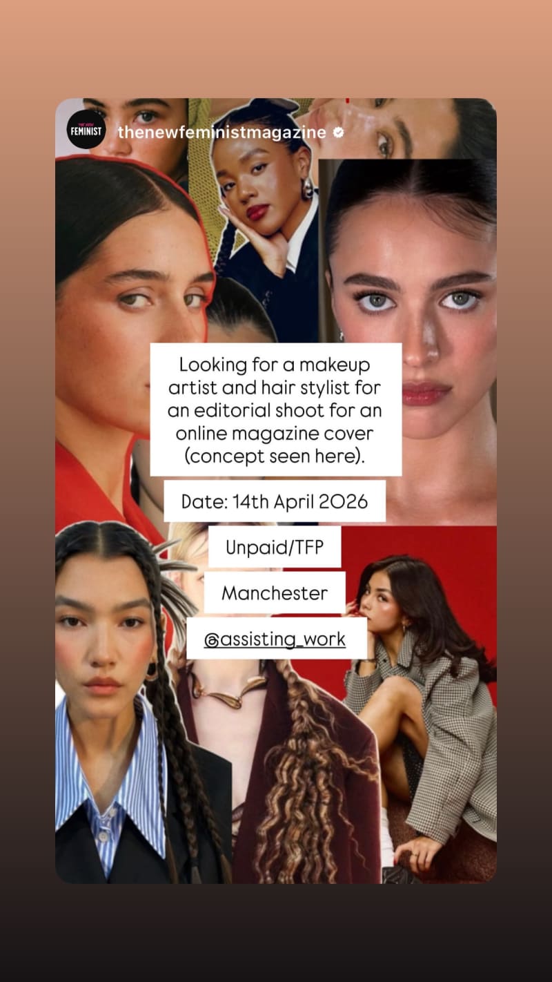 looking for a makeup artist and hair stylist for an editorial shoot for an online magazine cover. concept references are shown in the story.