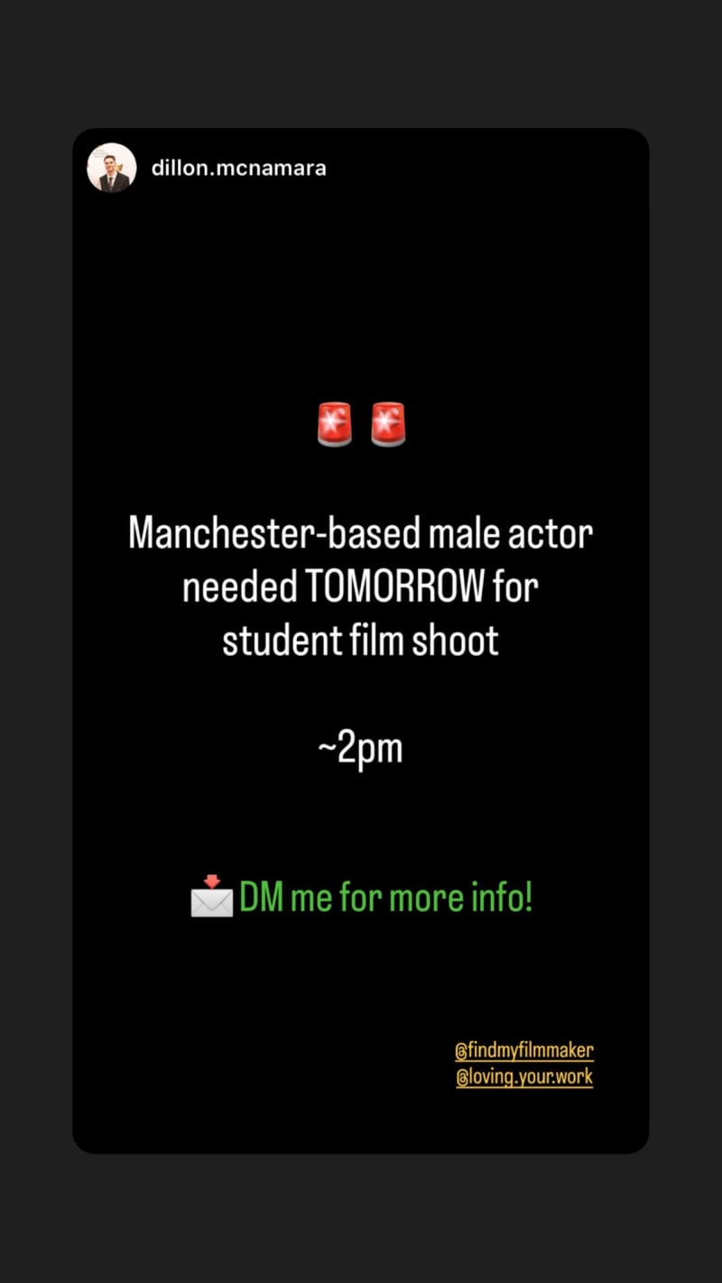 manchester-based male actor needed tomorrow for a student film shoot at around 2pm. dm for more info.
