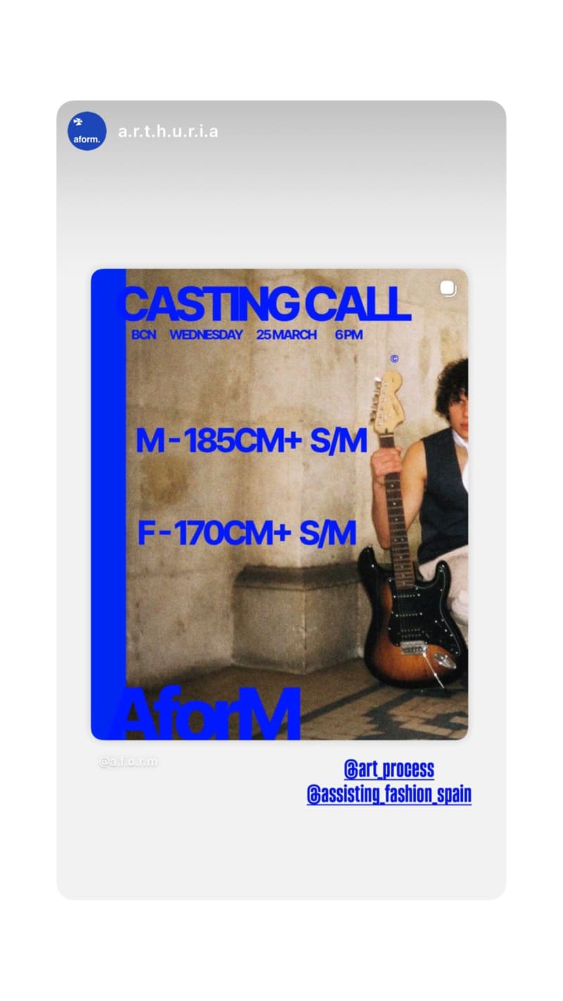 casting call for models in size s/m. looking for male models 185cm+ and female models 170cm+.