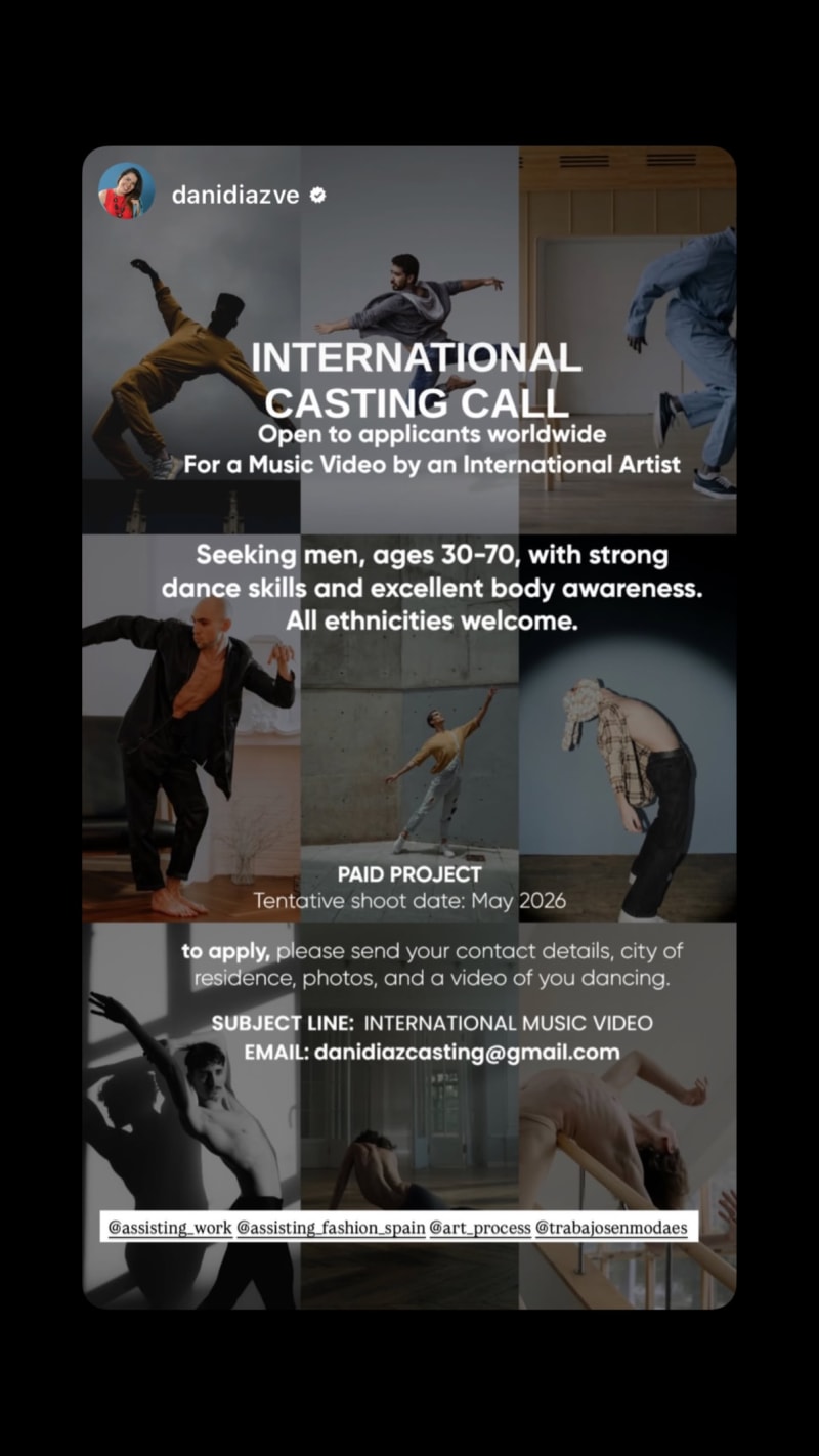 seeking men aged 30-70 with strong dance skills and excellent body awareness for a music video by an international artist. applicants should send contact details, city of residence, photos, and a video of themselves dancing.