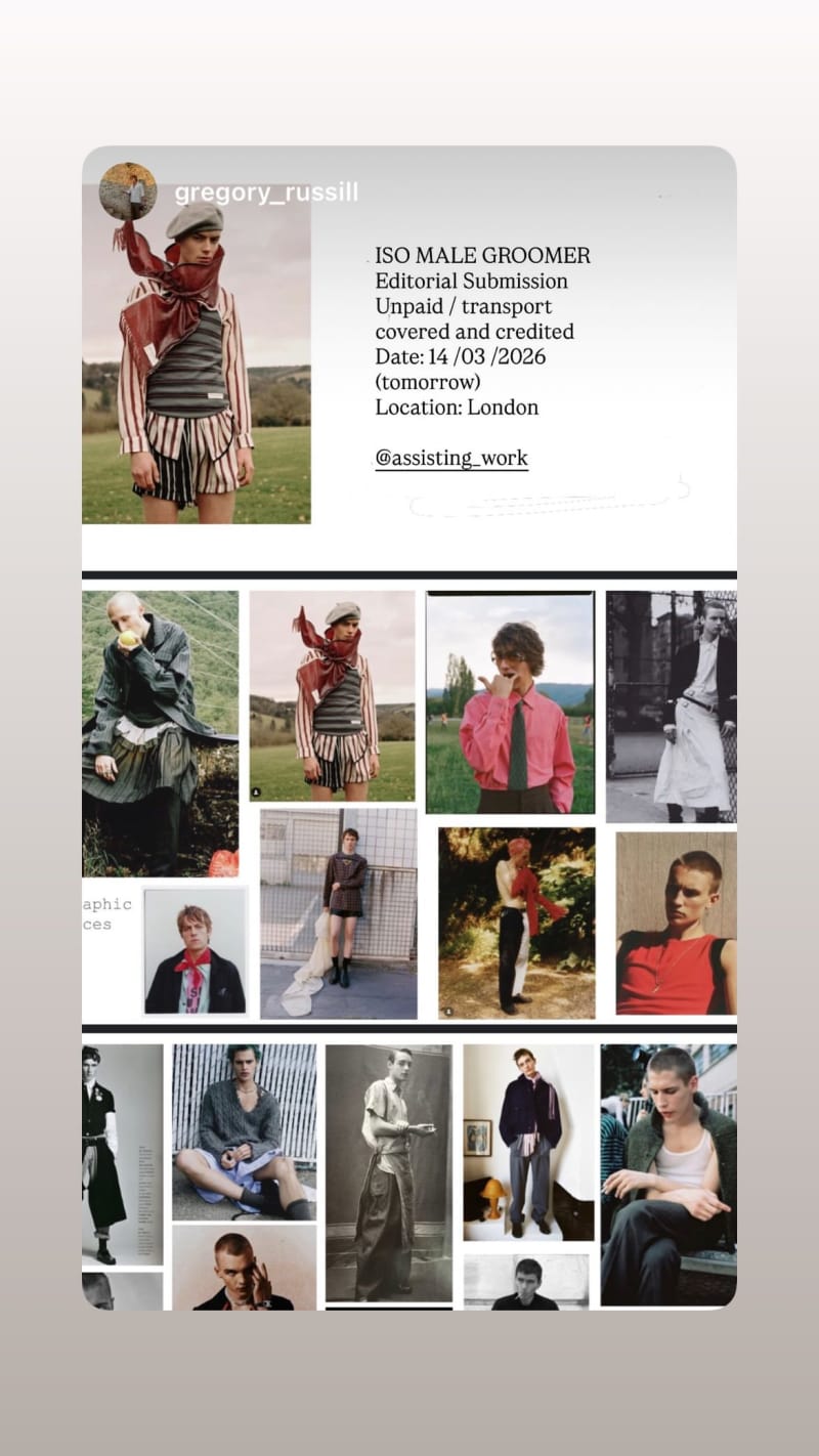 editorial submission seeking a male groomer. unpaid, with transport covered and credited.