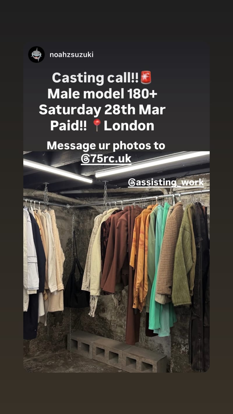 casting call for a male model 180+ in london. paid role; send your photos to @75rc.uk.