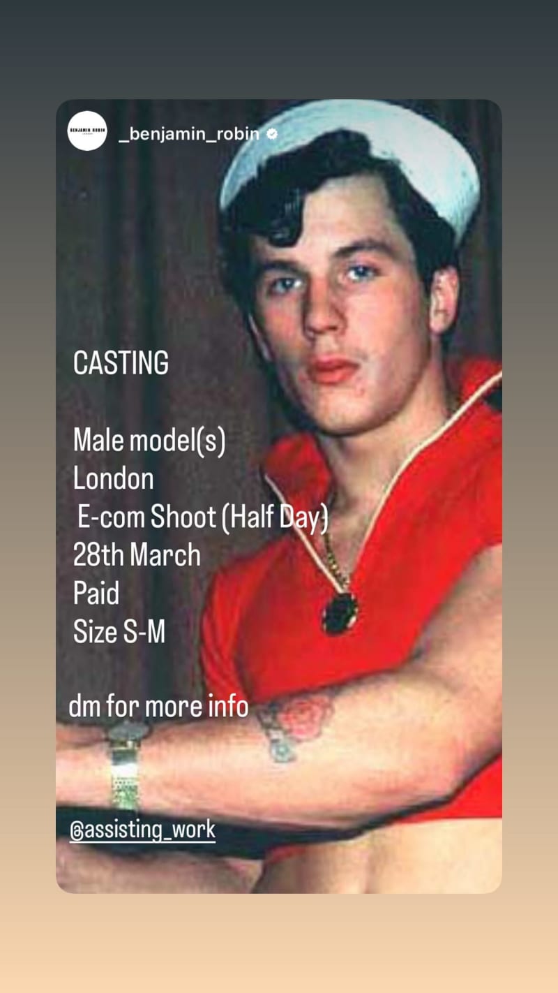 casting male model(s) for a paid e-com shoot in london. half-day shoot, size s-m.