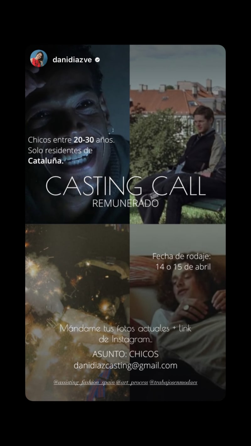 casting call for guys aged 20-30 who are residents of catalonia. send current photos and instagram link by email with subject line "chicos".