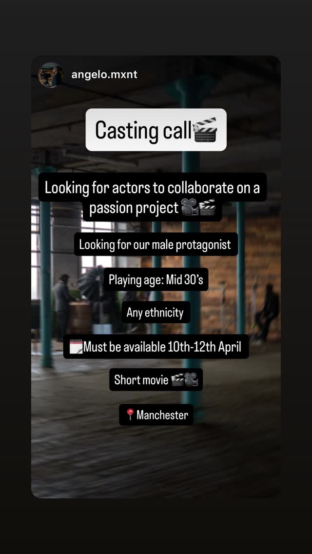 looking for a male protagonist actor to collaborate on a passion project short movie. playing age is mid 30s and any ethnicity.