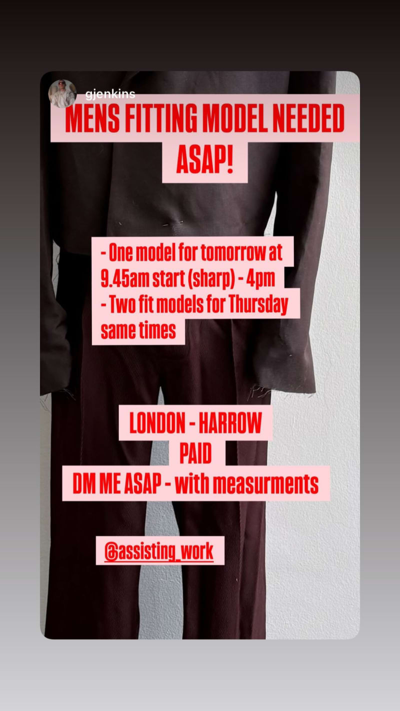 needed asap for fitting sessions: one model for tomorrow and two fit models for thursday, 9:45am to 4pm. dm with measurements.