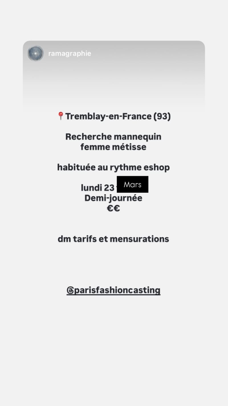 seeking a mixed-race female model experienced with e-shop pace for a half-day shoot. send rates and measurements by dm.