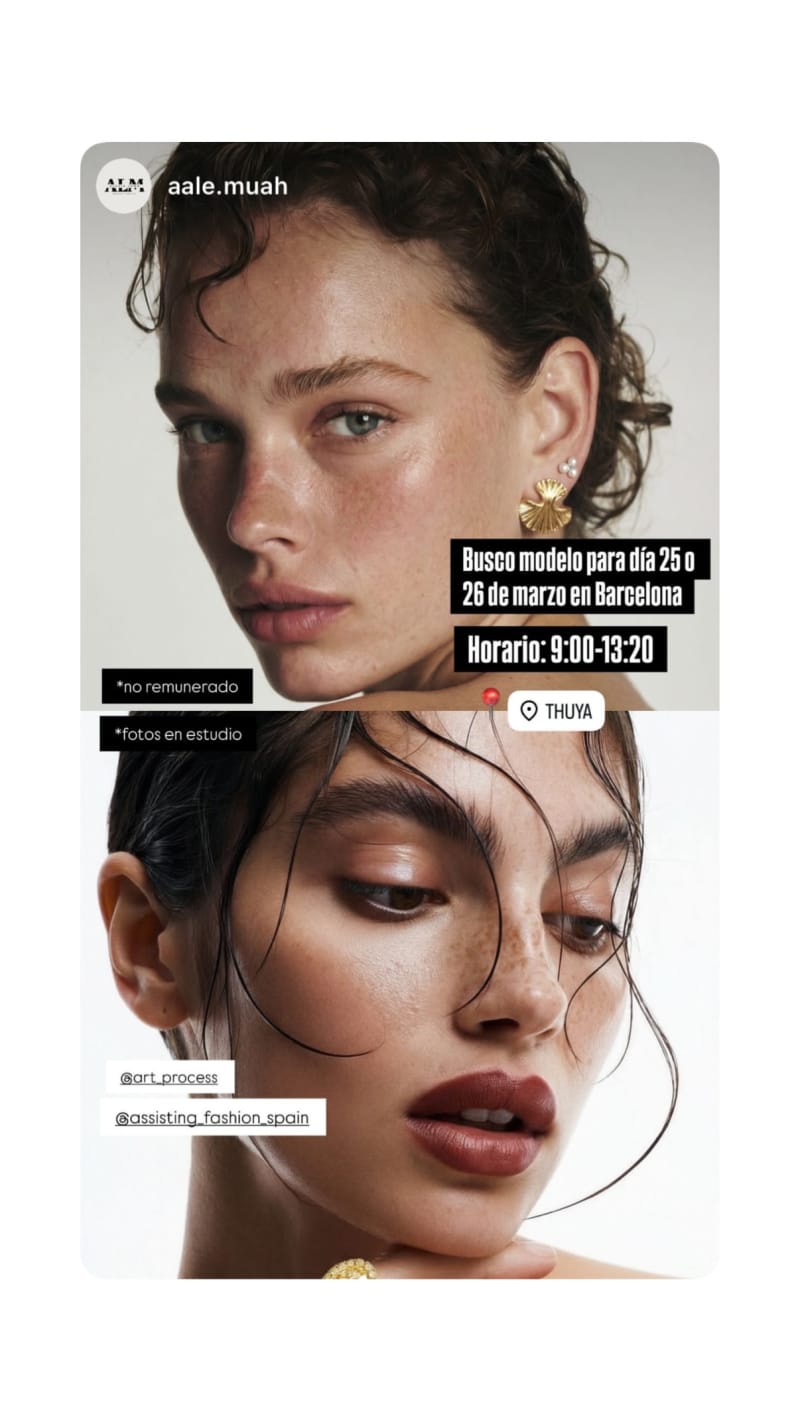 seeking a model for studio photos on 25 or 26 march in barcelona, from 9:00 to 13:20. unpaid opportunity.