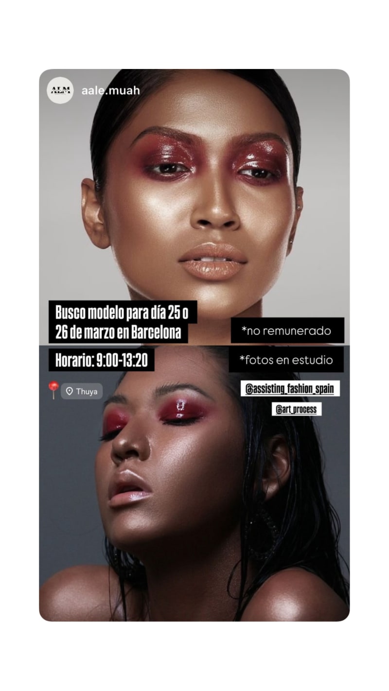 seeking a model for studio photos in barcelona on 25 or 26 march, from 9:00 to 13:20.