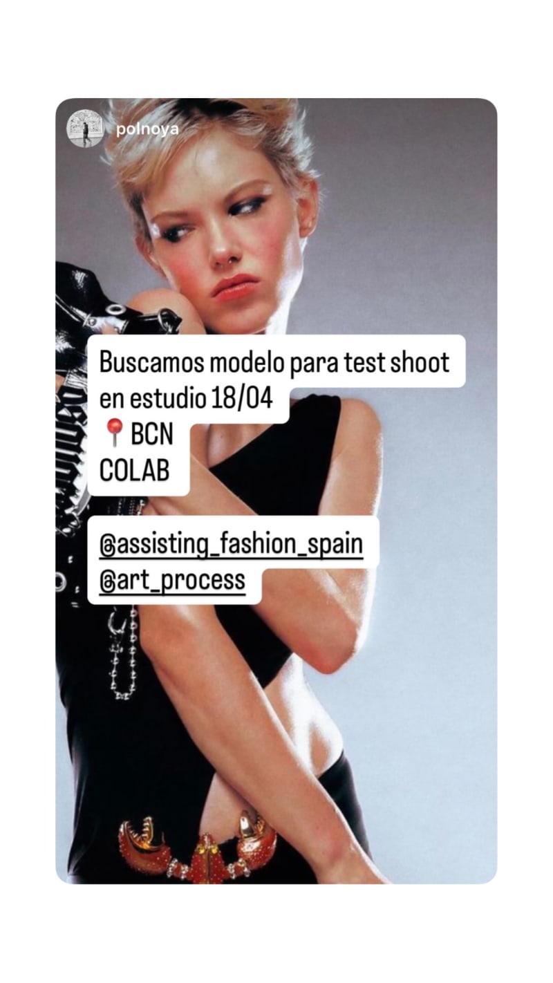 looking for a model for a test shoot in studio. collab in barcelona on 18/04.
