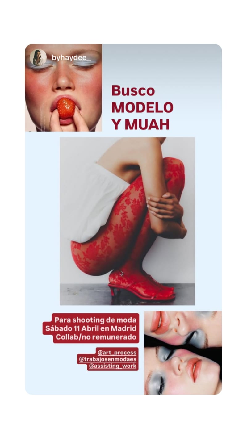 looking for a model and a makeup artist for a fashion shoot in madrid. this is a collab and not remunerated.