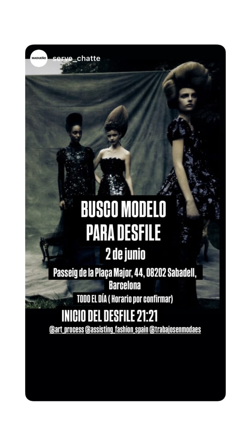seeking a model for a runway show taking place all day, with schedule to be confirmed. show start is at 21:21.