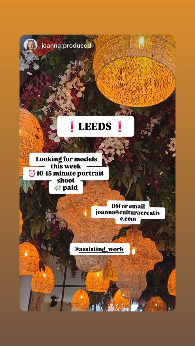 looking for models this week for a 10-15 minute portrait shoot. dm or email joanna@culturacreative.com.