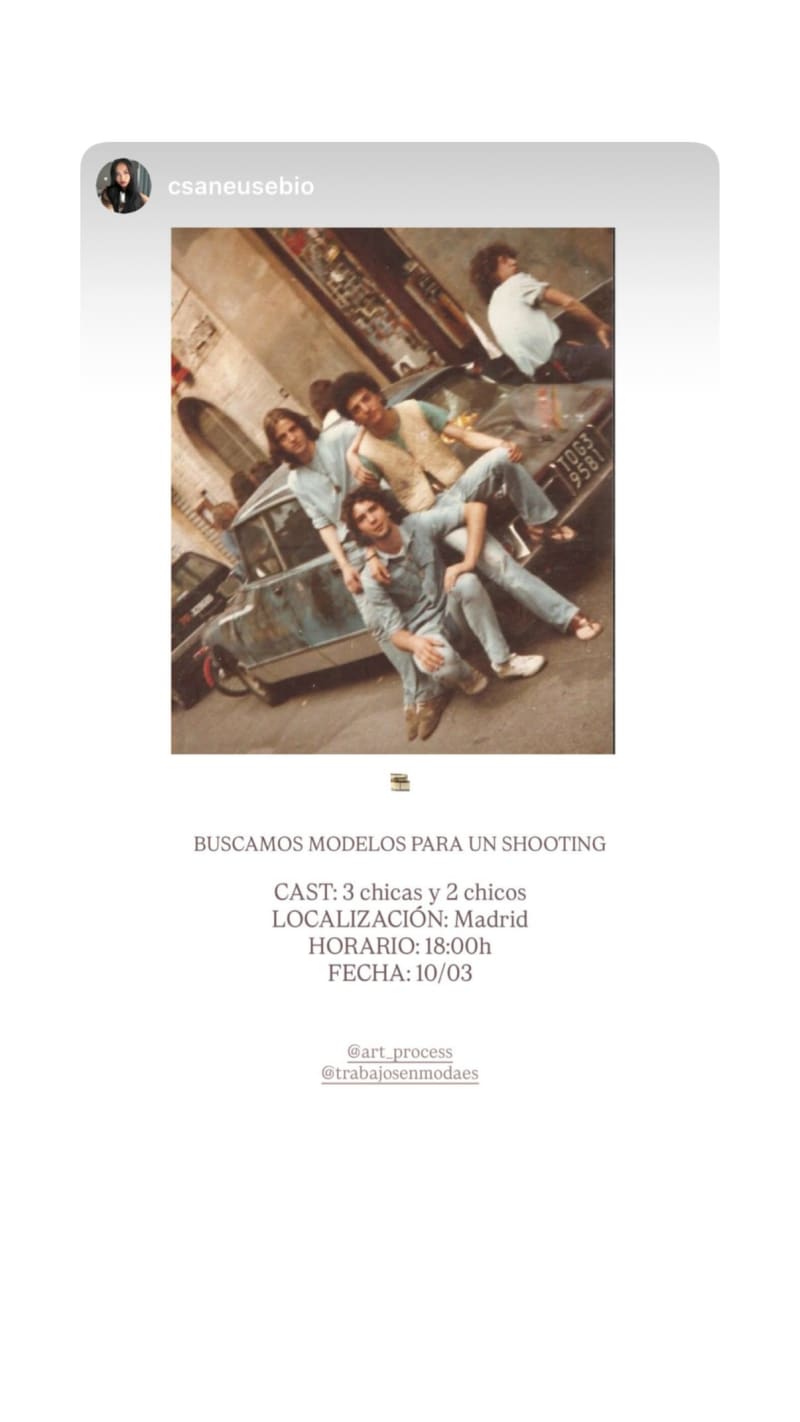 looking for 3 women and 2 men for a shooting in madrid at 18:00.