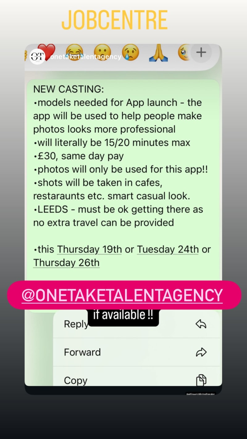 models needed for an app launch shoot to help demonstrate a photo app that makes images look more professional. quick 15–20 minute shoot in cafes and restaurants with a smart casual look; photos used only for the app.
