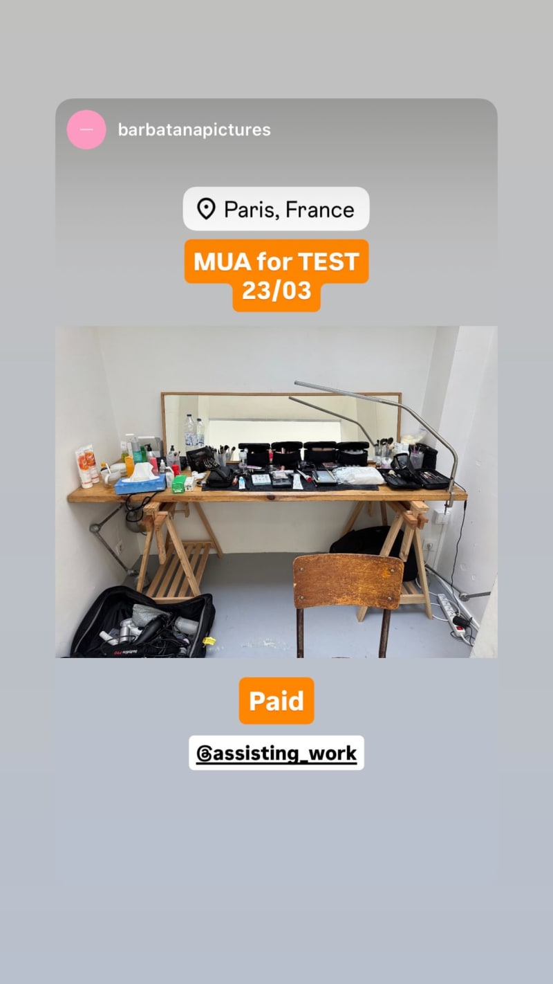 seeking a makeup artist for a test shoot in paris. this is a paid opportunity.
