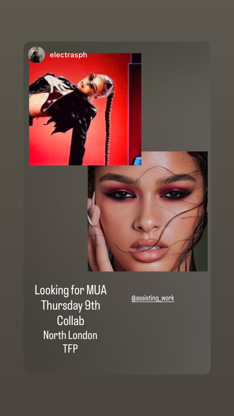 looking for a mua for a collab/tfp shoot in north london on thursday 9th.