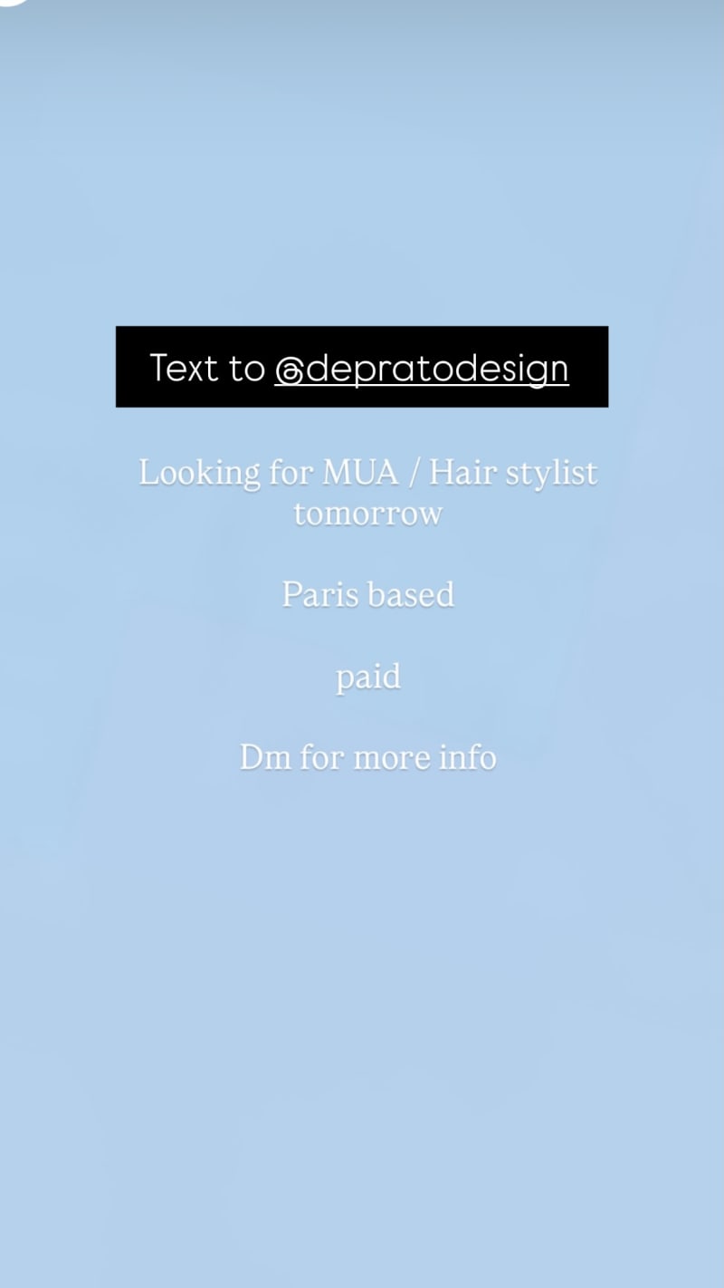looking for mua / hair stylist tomorrow in paris; paid. dm for more info.