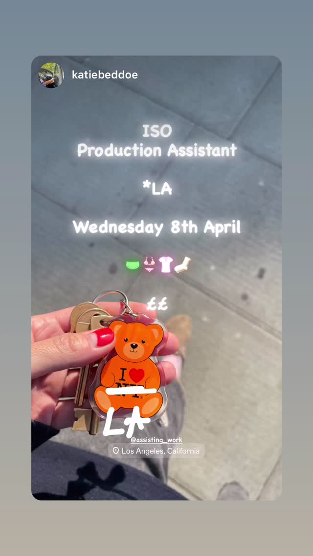 iso production assistant for a shoot in la on wednesday 8th april. paid opportunity.