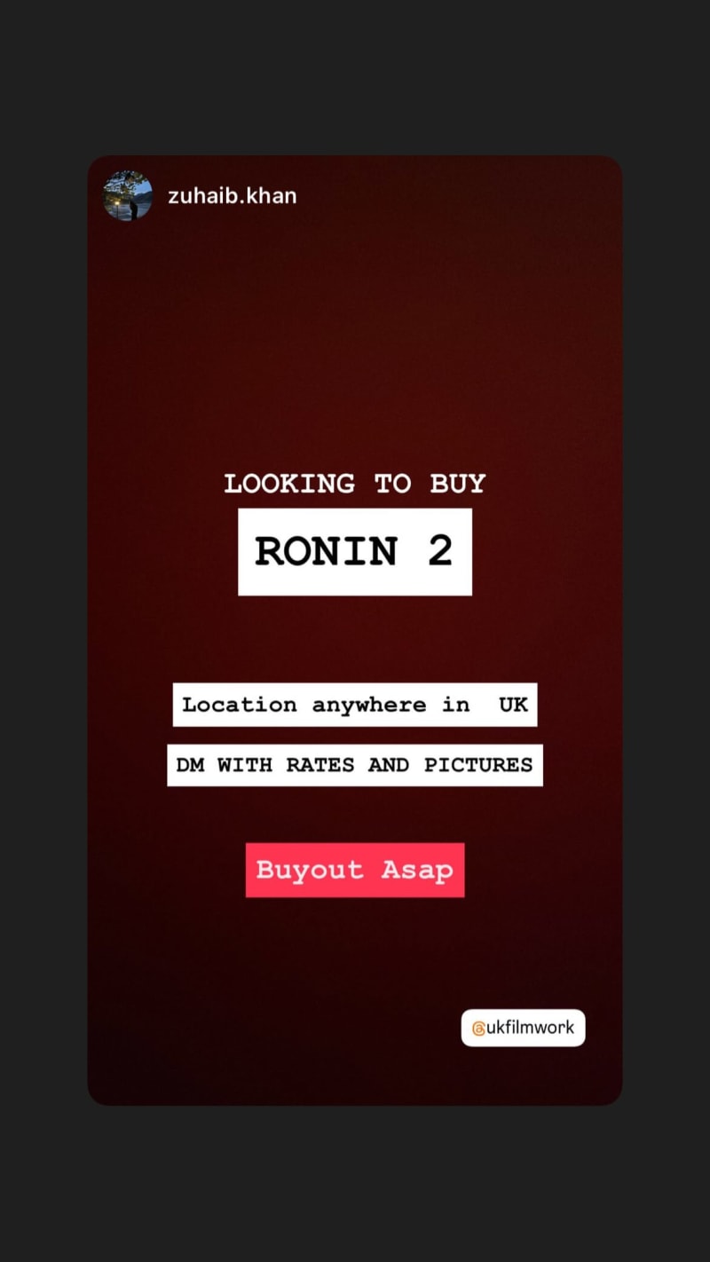 looking to buy a ronin 2 anywhere in the united kingdom. dm with rates and pictures for an asap buyout.
