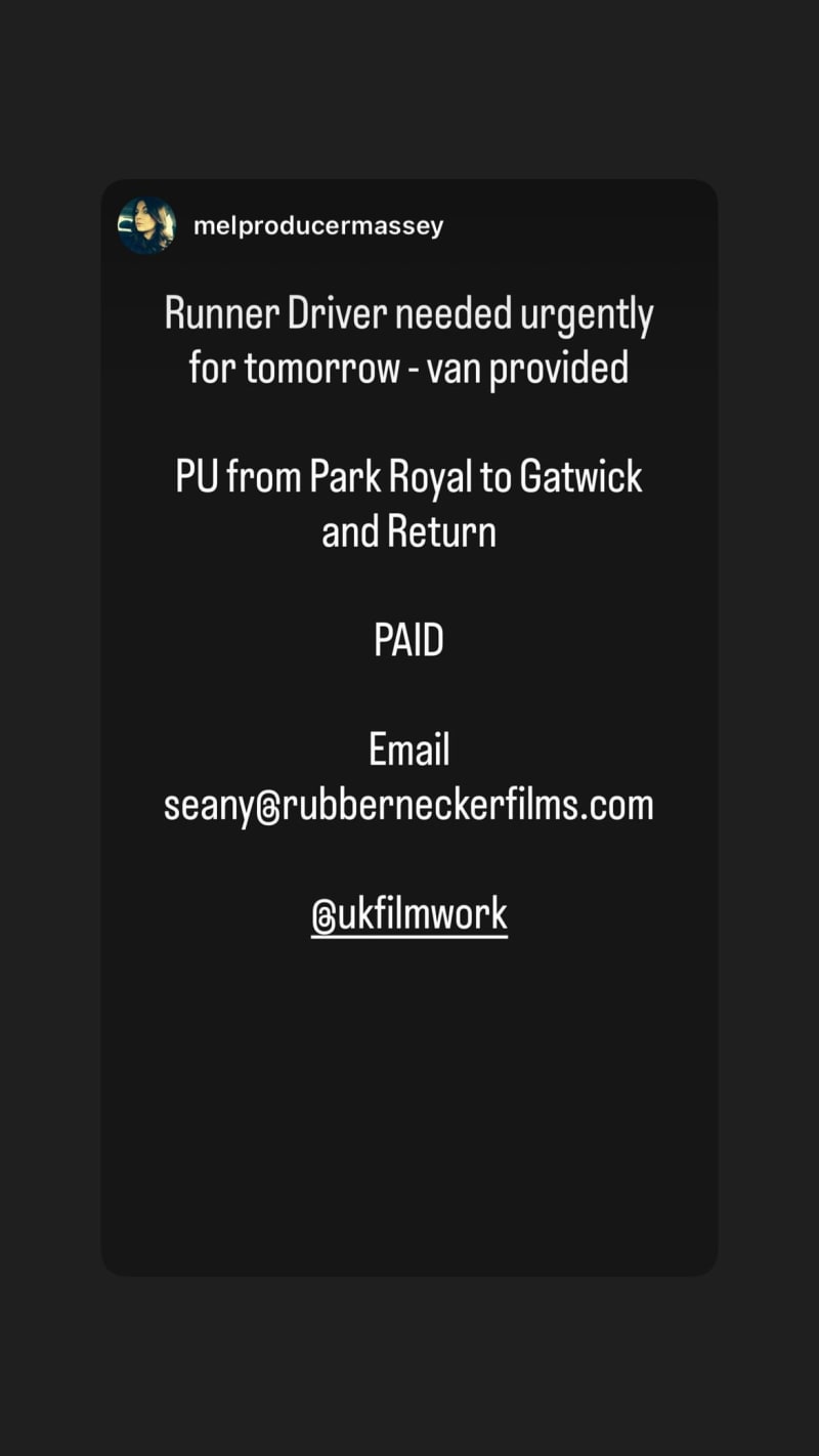 urgent for tomorrow; drive a van for pick-up from park royal to gatwick and return, van provided