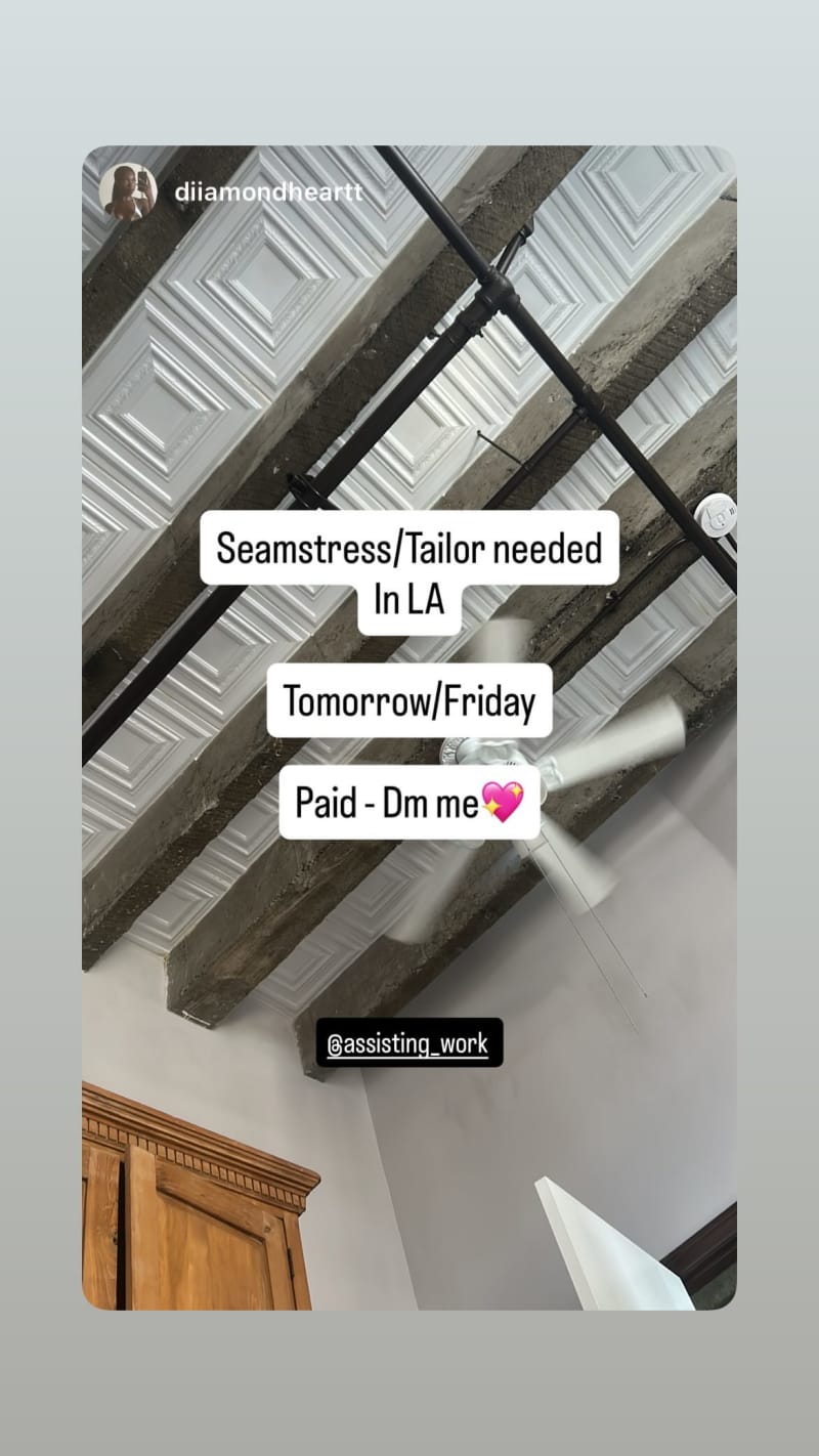 seamstress/tailor needed in los angeles for tomorrow/friday. paid opportunity, dm me.