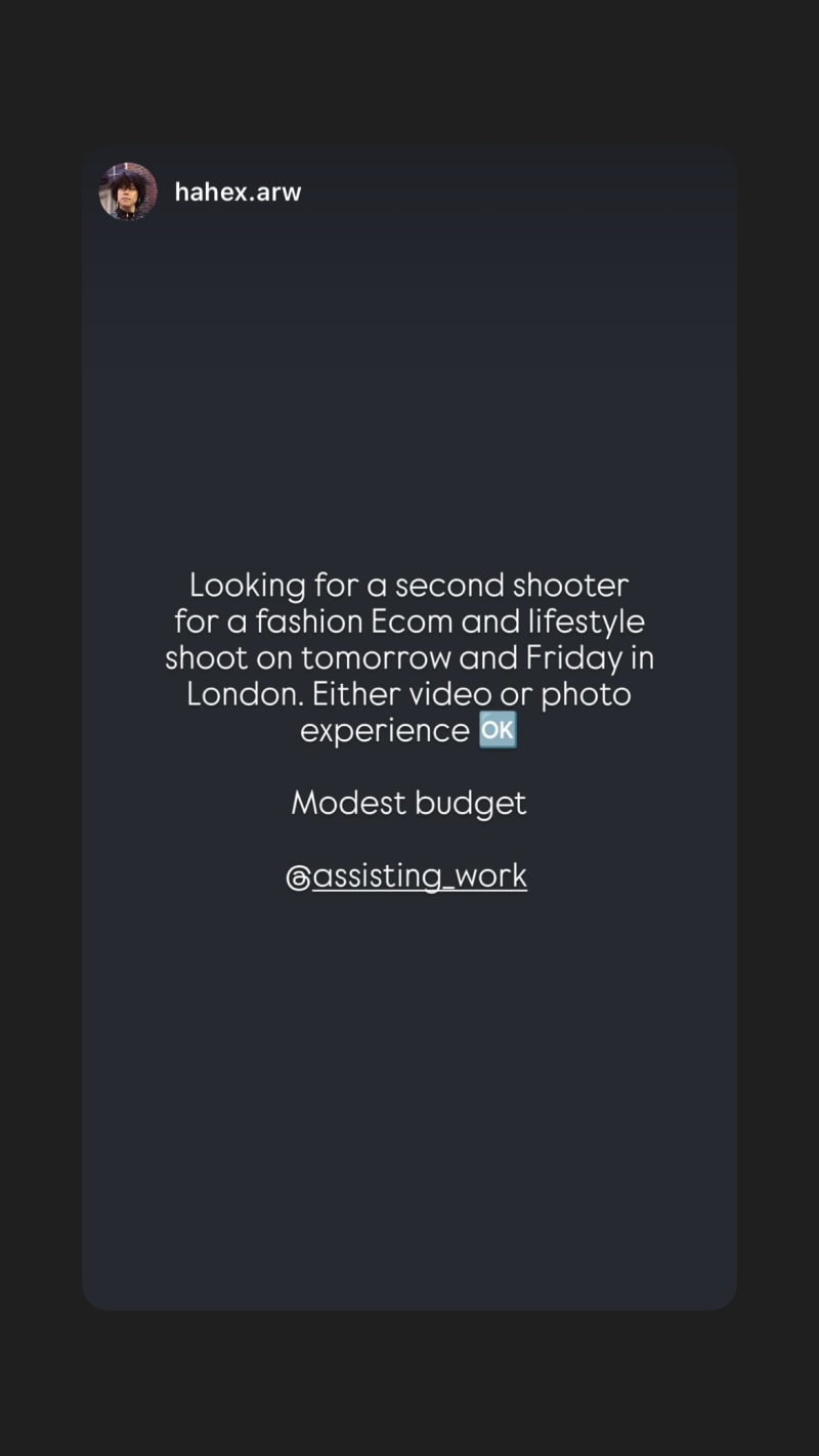 looking for a second shooter for a fashion ecom and lifestyle shoot; video or photo experience is acceptable.