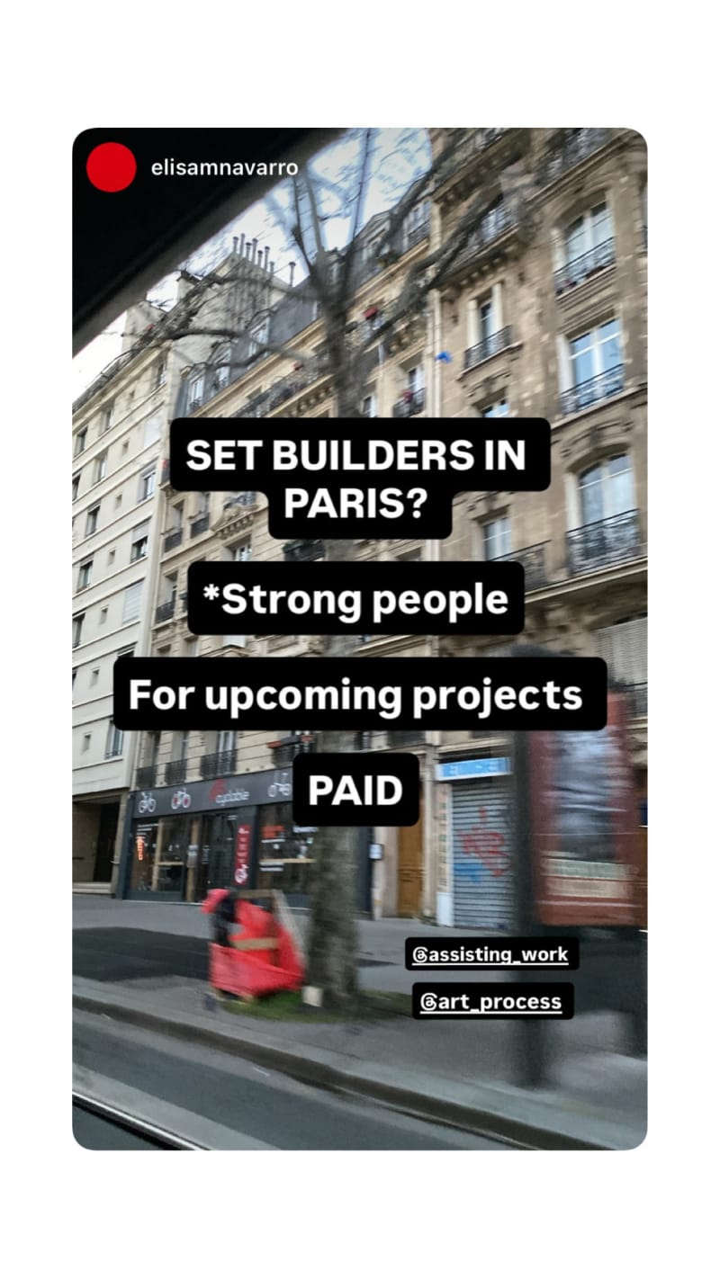 set builders wanted in paris for upcoming projects. seeking strong people for paid work.