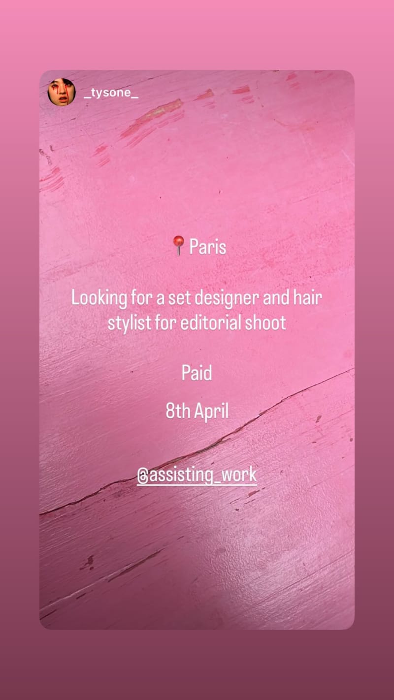 looking for a set designer and hair stylist for a paid editorial shoot.