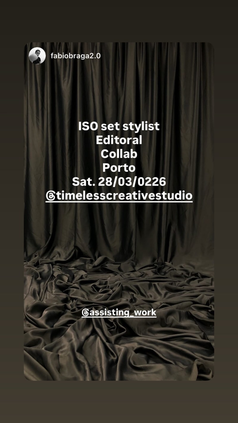 editorial collab seeking a set stylist in porto. the story tags @timelesscreativestudio.