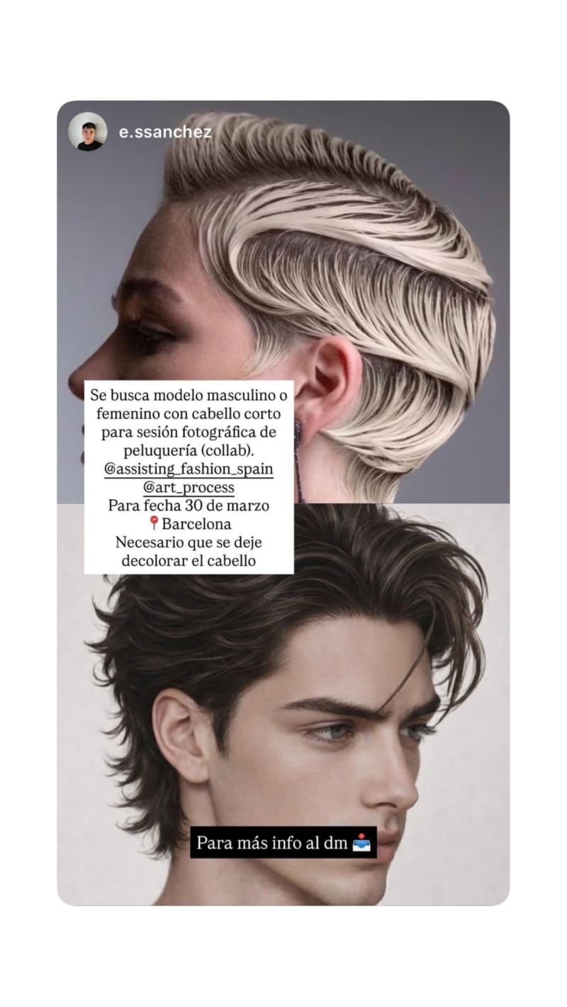 model wanted for a hair photography collab in barcelona. must be open to having their hair bleached.