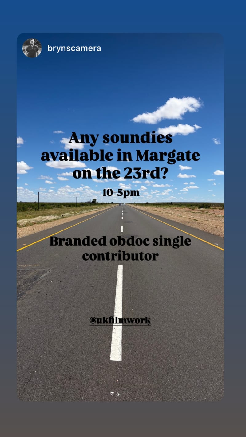 looking for a soundie available in margate on the 23rd, 10–5pm, for a branded observational documentary as a single contributor shoot.