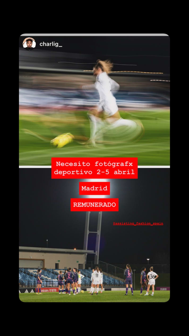 seeking a sports photographer for 2-5 april in madrid. the role is paid.