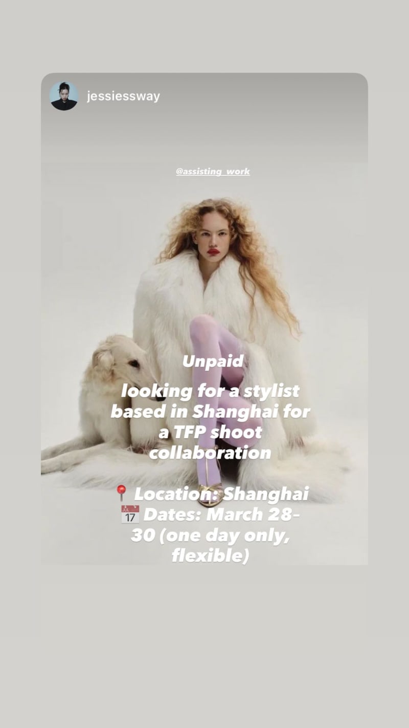 unpaid tfp shoot collaboration seeking a stylist based in shanghai. one shooting day between march 28 and 30, flexible.
