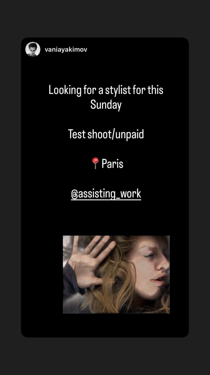looking for a stylist for a test shoot this sunday in paris. this is an unpaid opportunity.