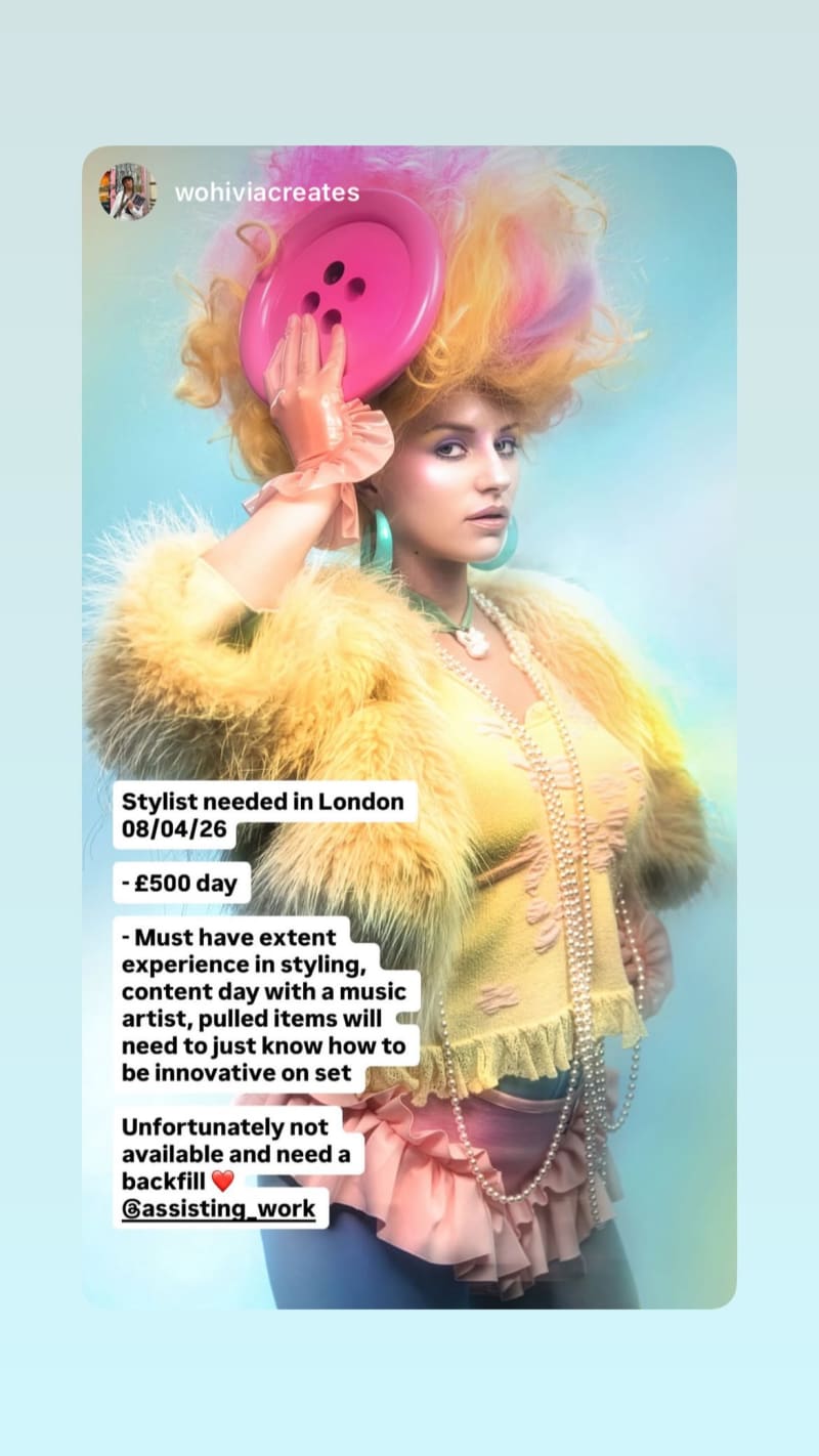 stylist needed for a content day with a music artist. must have strong styling experience, bring pulled items, and be innovative on set.