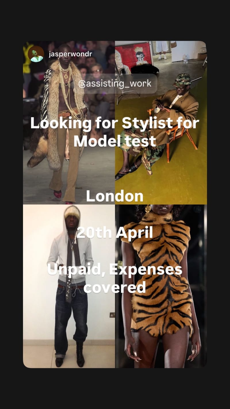 looking for a stylist for a model test in london. unpaid, expenses covered.