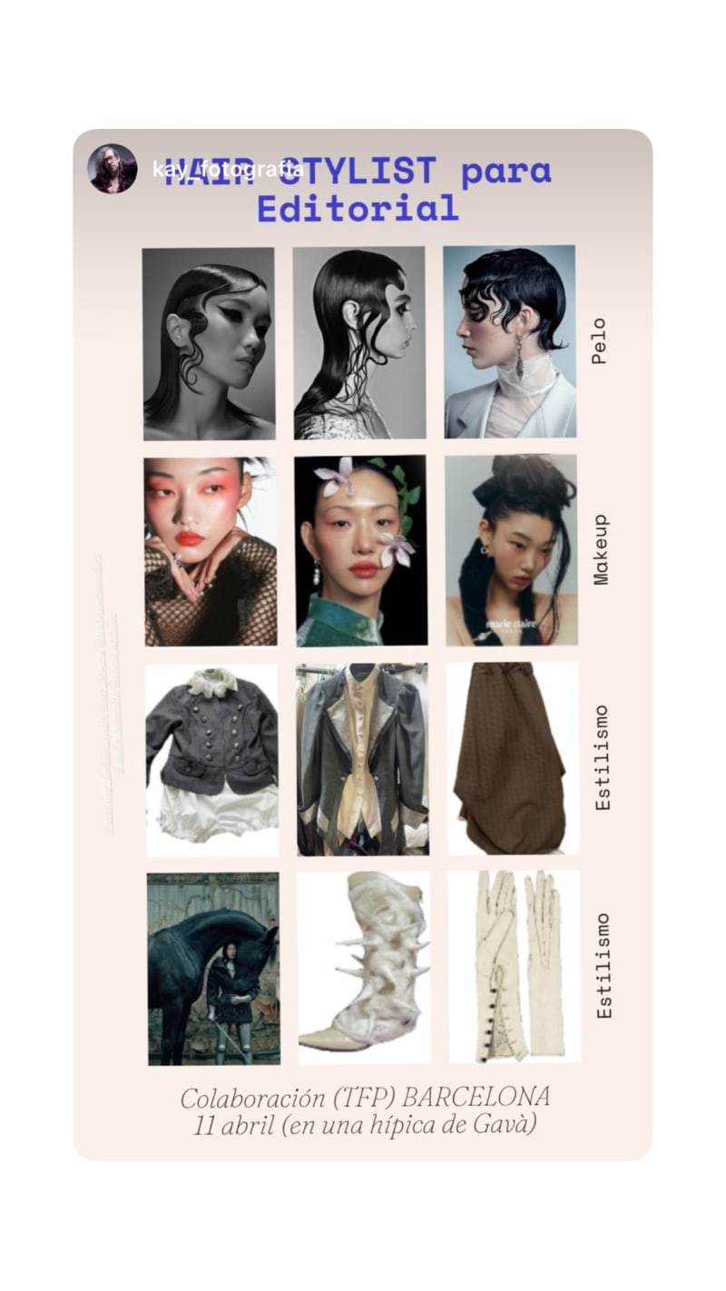 tfp editorial collaboration seeking a stylist. shoot references include hair, makeup and wardrobe styling in a horse riding setting in gavà near barcelona.