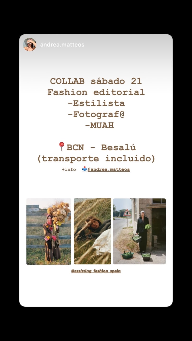 collab for a fashion editorial on saturday 21, seeking a stylist, photographer and muah. transport is included for the bcn to besalú trip.