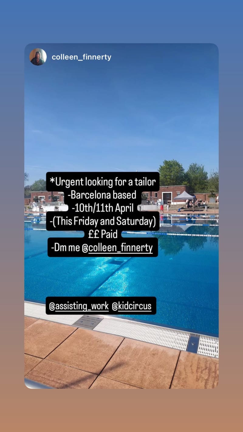 urgent looking for a barcelona-based tailor for this friday and saturday. dm @colleen_finnerty; ££ paid.