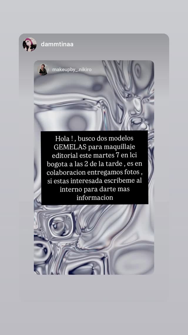 looking for two twin models for an editorial makeup shoot in bogota at 2 pm. this is a collaboration and photos will be provided.