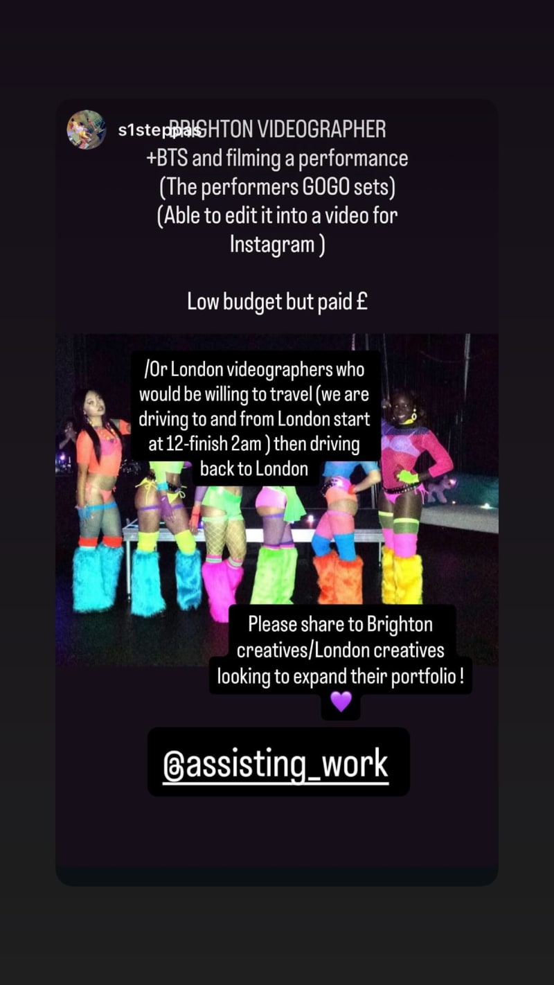 bts and filming a performance, including the performers' gogo sets, with ability to edit it into a video for instagram. low budget but paid, and london videographers willing to travel are also considered.