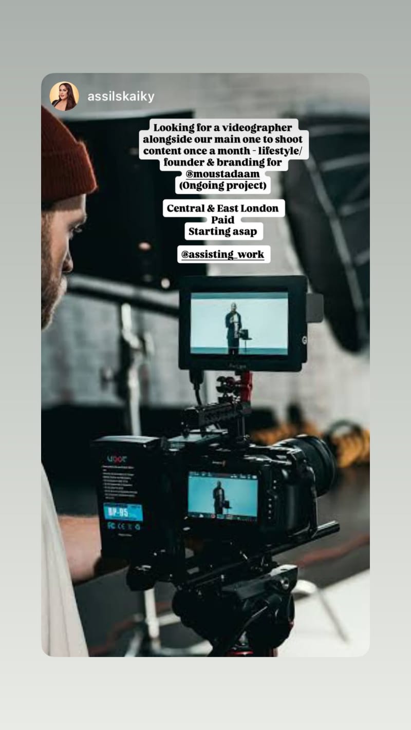 shoot content once a month alongside the main videographer for lifestyle founder and branding content for @moustadaam. ongoing project starting asap.