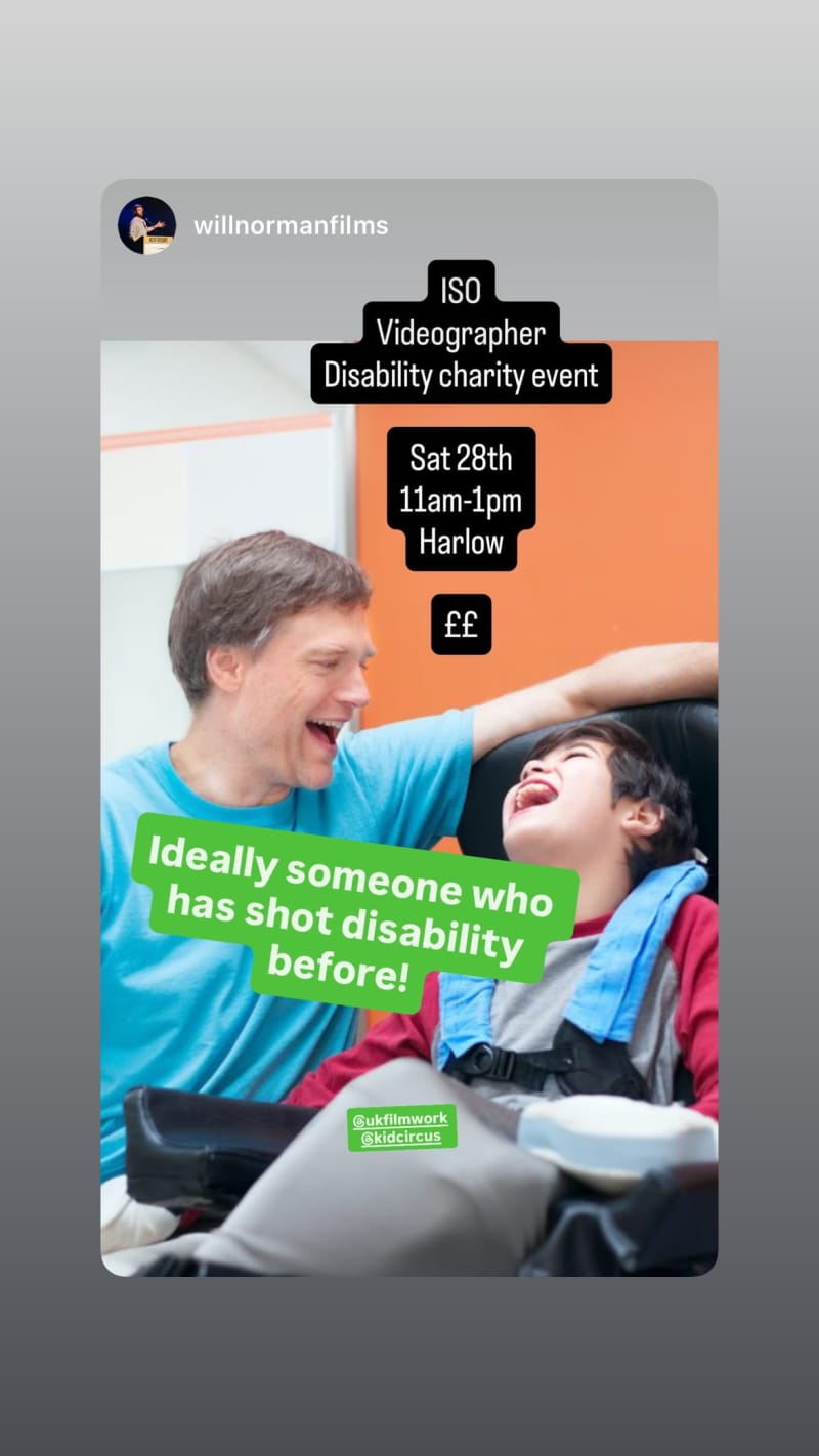 seeking a videographer for a disability charity event. ideally someone who has shot disability before.