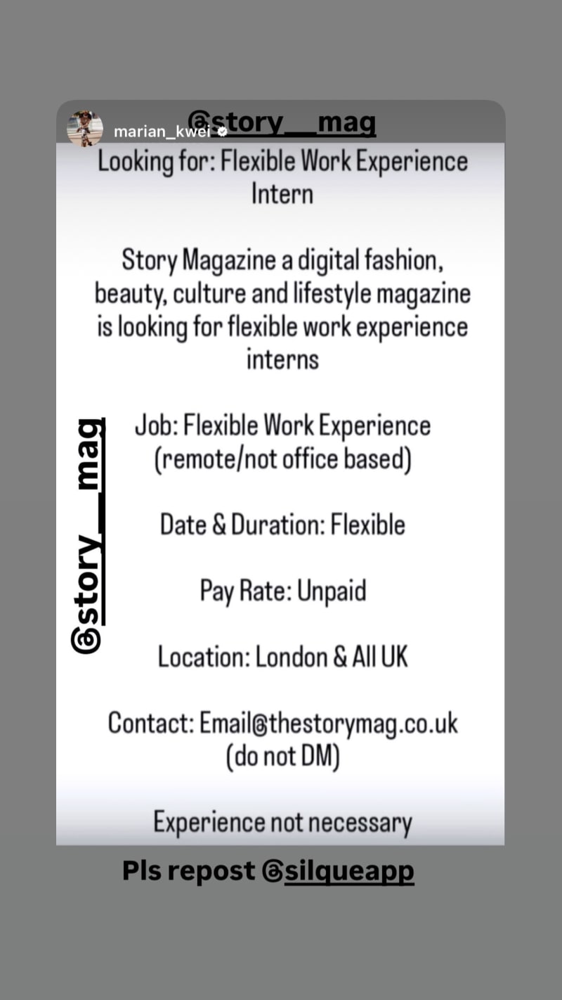 flexible work experience intern role for a digital fashion, beauty, culture and lifestyle magazine. remote/not office based, with no experience necessary.