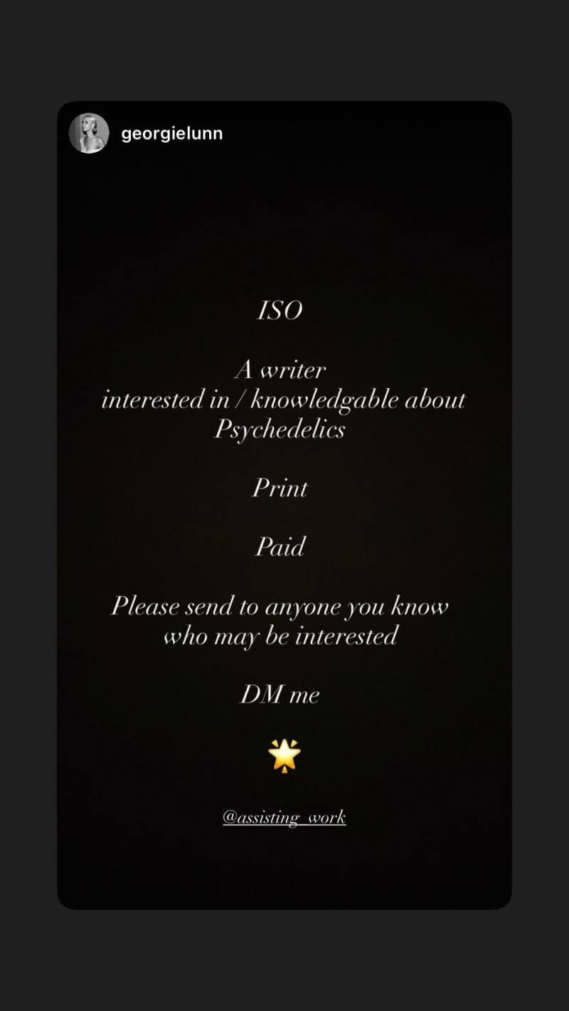 writer wanted for a print project, interested in or knowledgeable about psychedelics. paid opportunity; dm me.