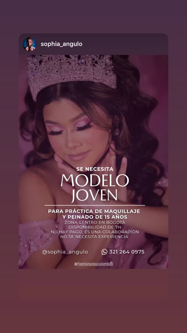 young model needed for a 15-year-old makeup and hairstyling practice in central bogotá. 7-hour availability required and no experience needed.